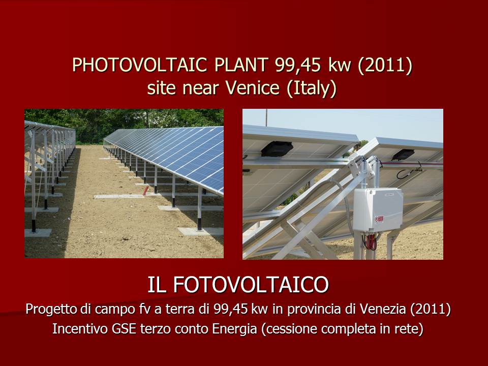 In 2011 we designed and built and now manage this 100 kilowatt photovoltaic plant in Portogruaro Italy.